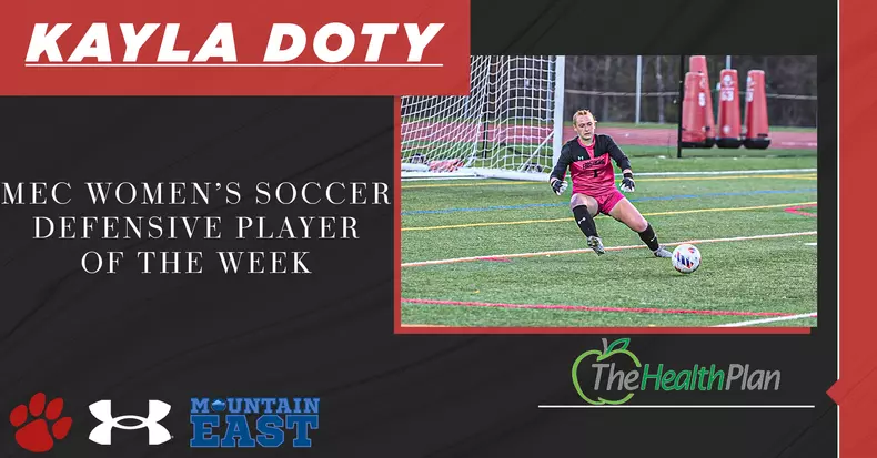 - Doty Earns First Career MEC Women's Soccer Weekly HonorFor the first time in her career, sophomore goalkeeper Kayla Doty earned Defensive Player of the Week honors, presented by The Health Plan, as announced by the league office.