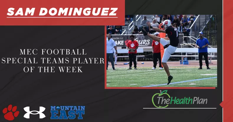 - Dominguez Earns First Career Special Teams Player of the WeekRedshirt sophomore punter Sam Dominguez was named the MEC Football Special Teams Player of the Week, presented by The Health Plan, as announced by the league office on Monday.